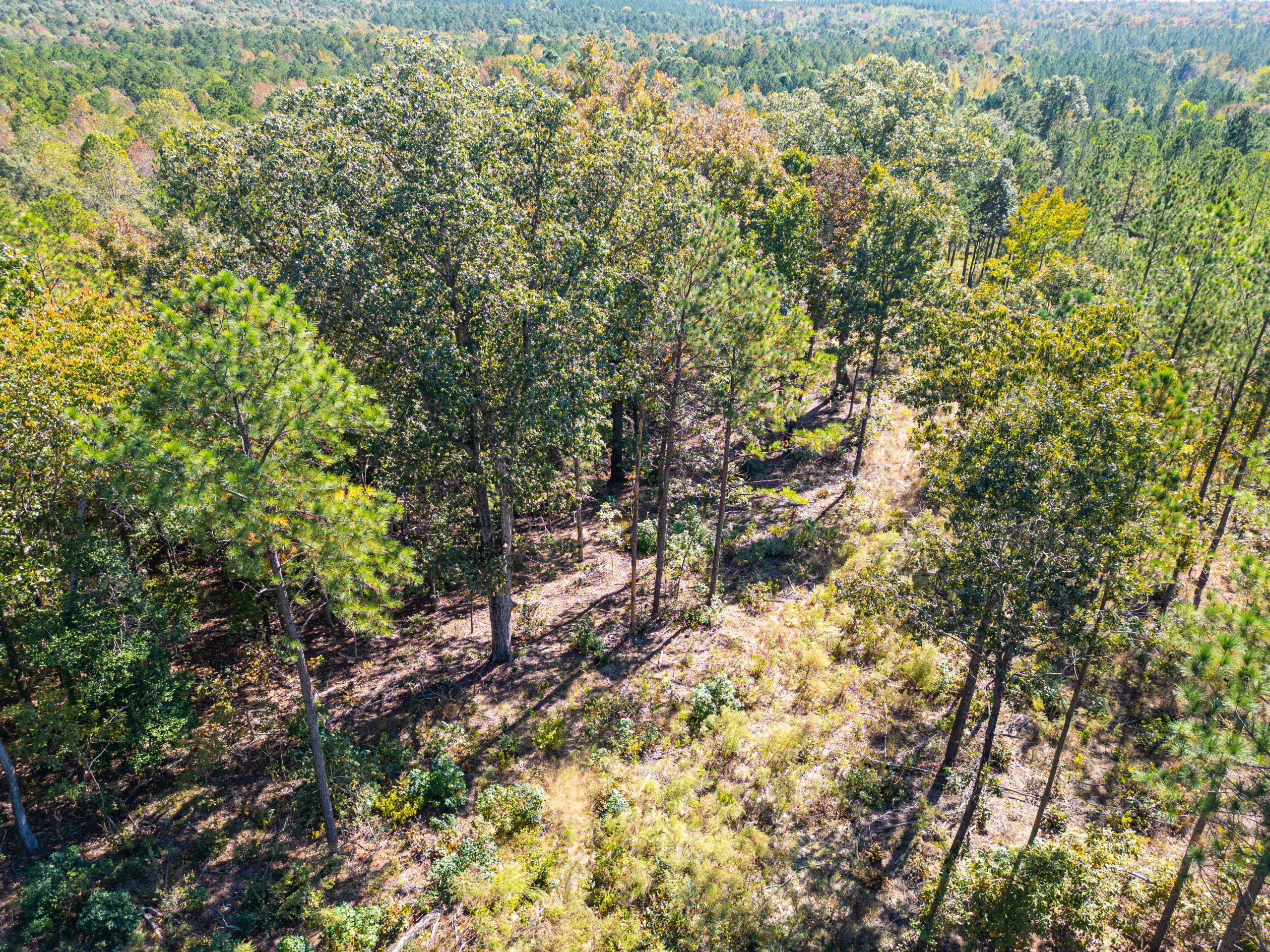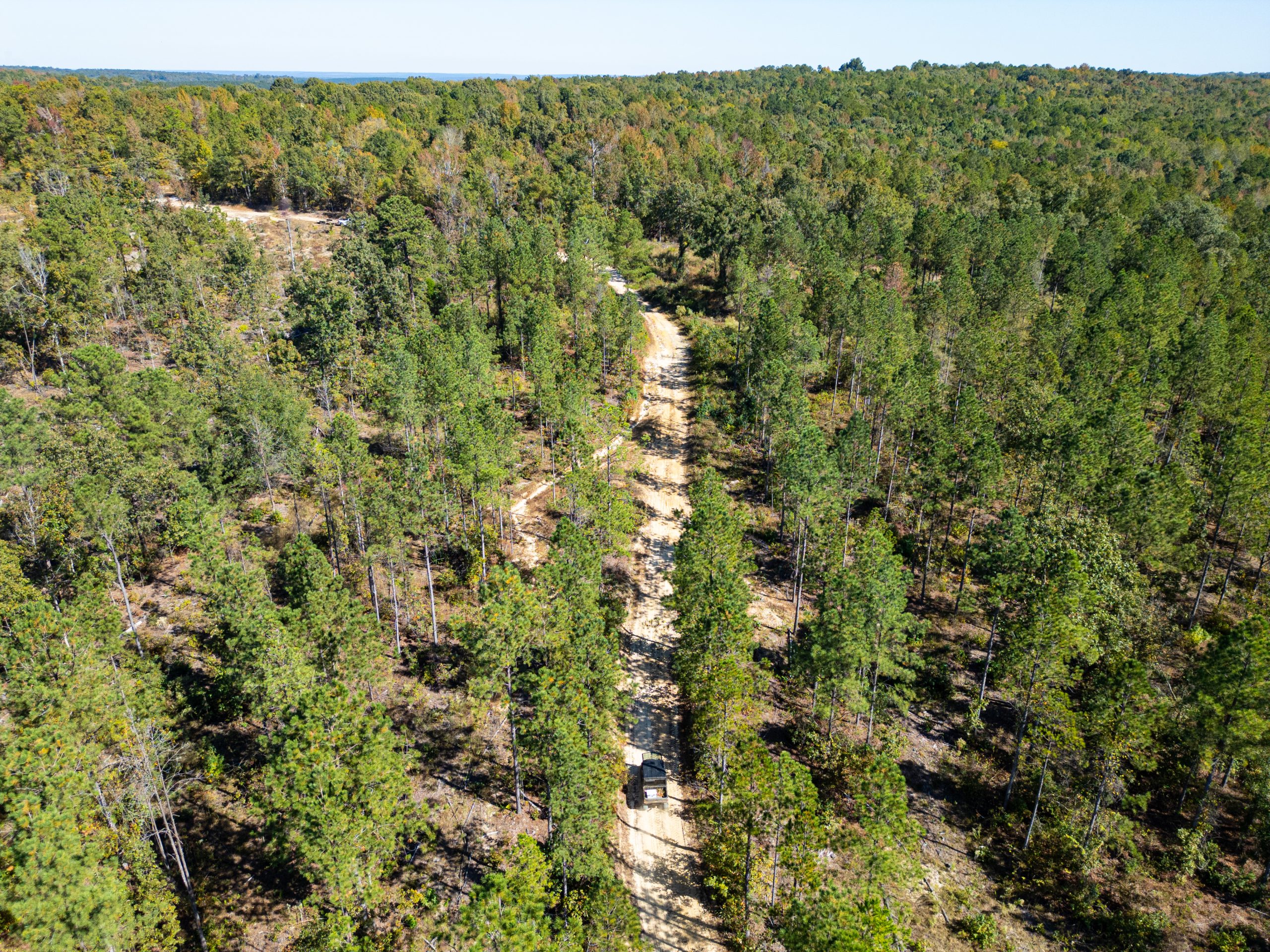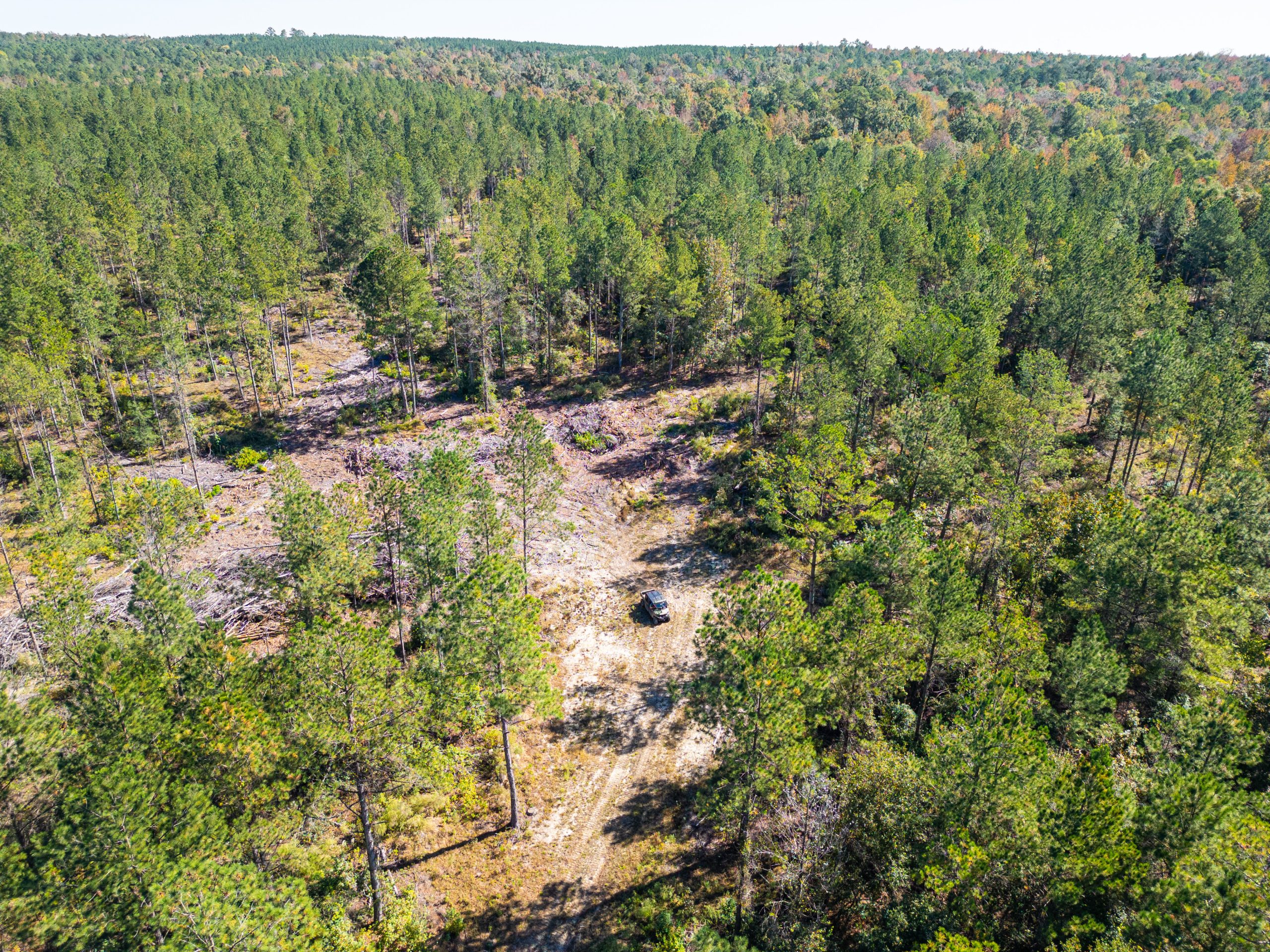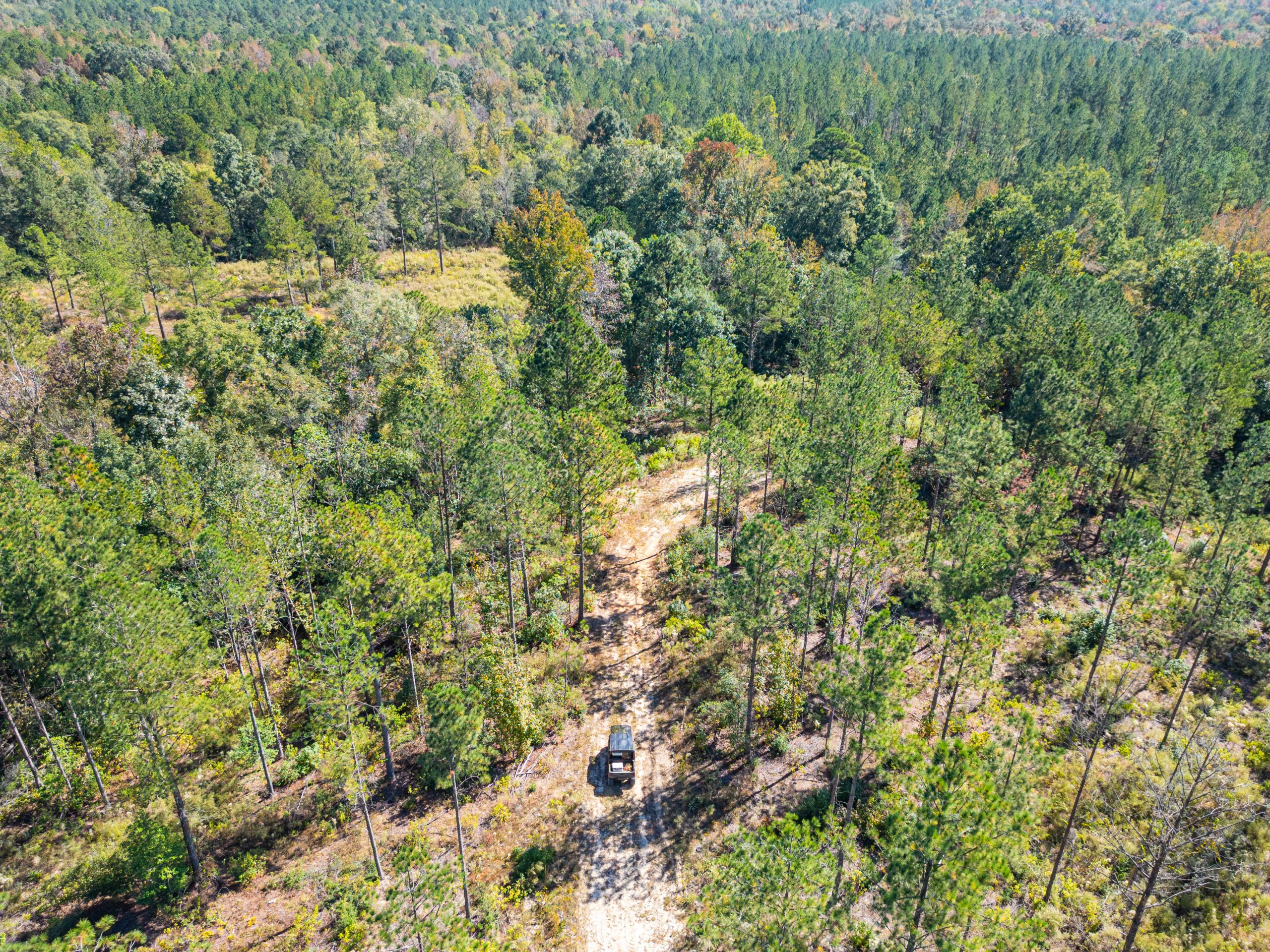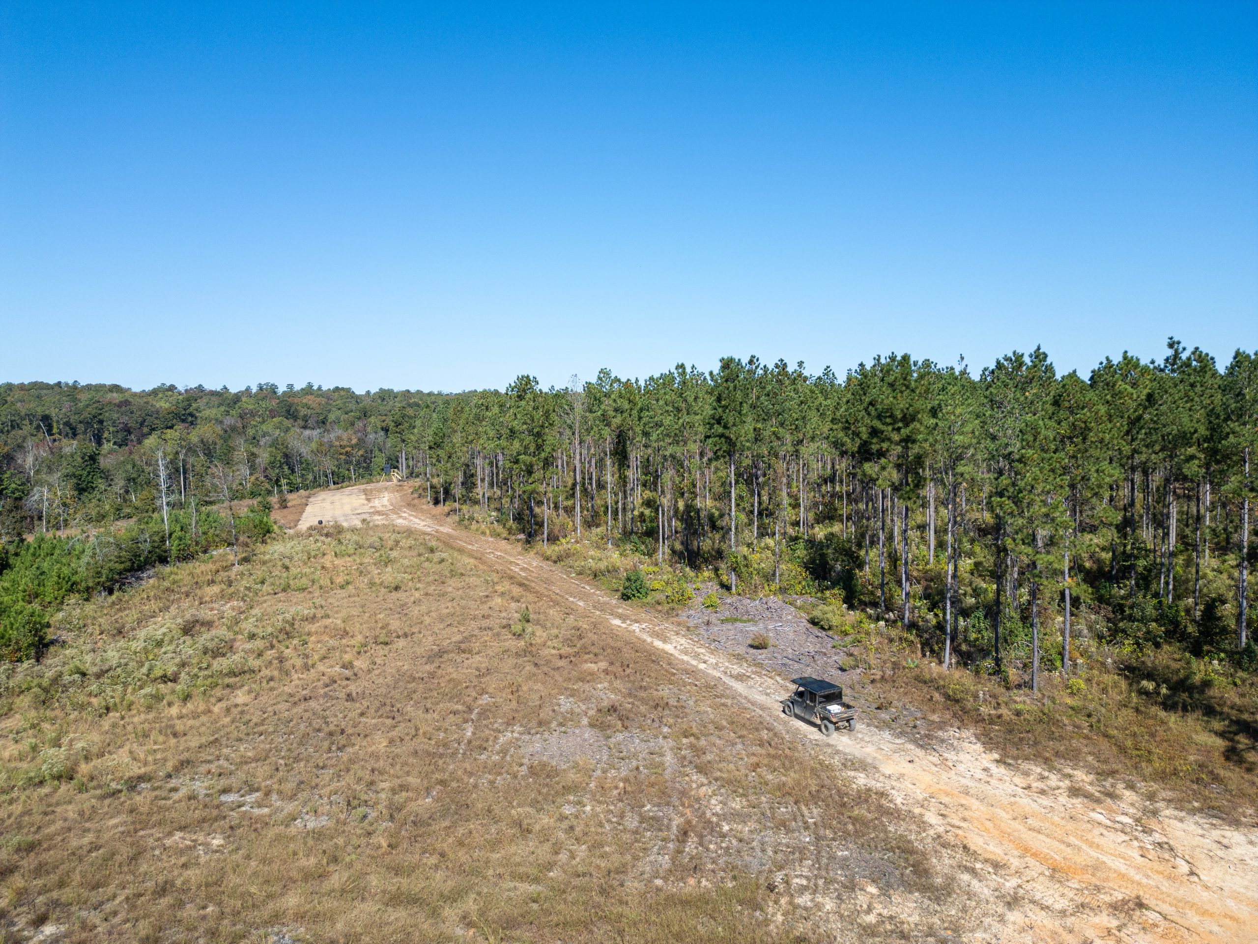 Featuring gravel road frontage just off the paved road, the tract offers an excellent internal road system that winds through rolling terrain — perfect for multiple cabin or homesite options with long, scenic views. The land is planted in pines for future timber income, with a mix of native habitat supporting abundant wildlife.
