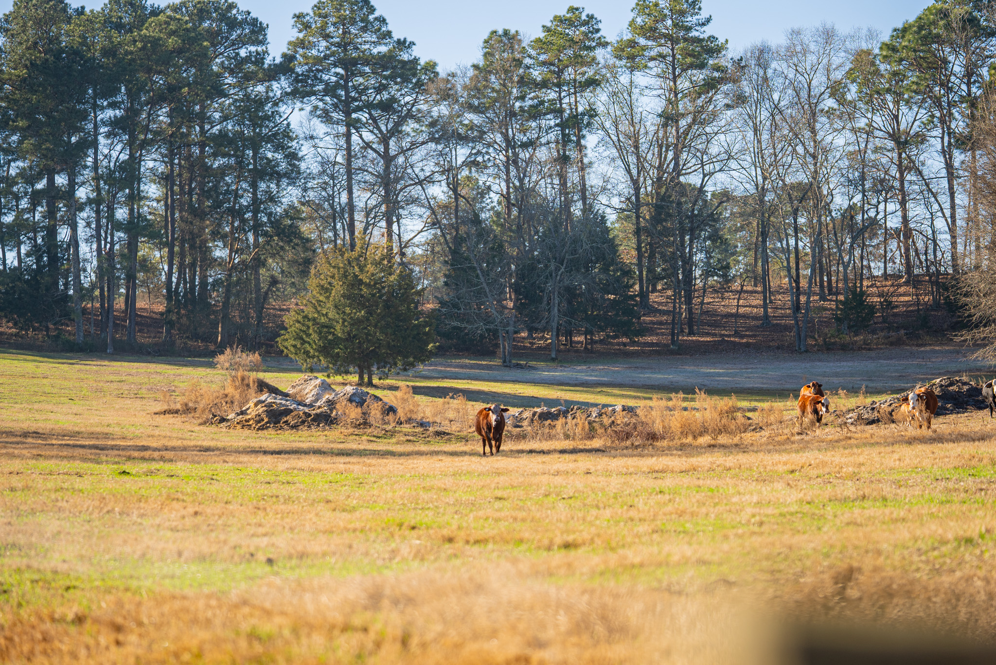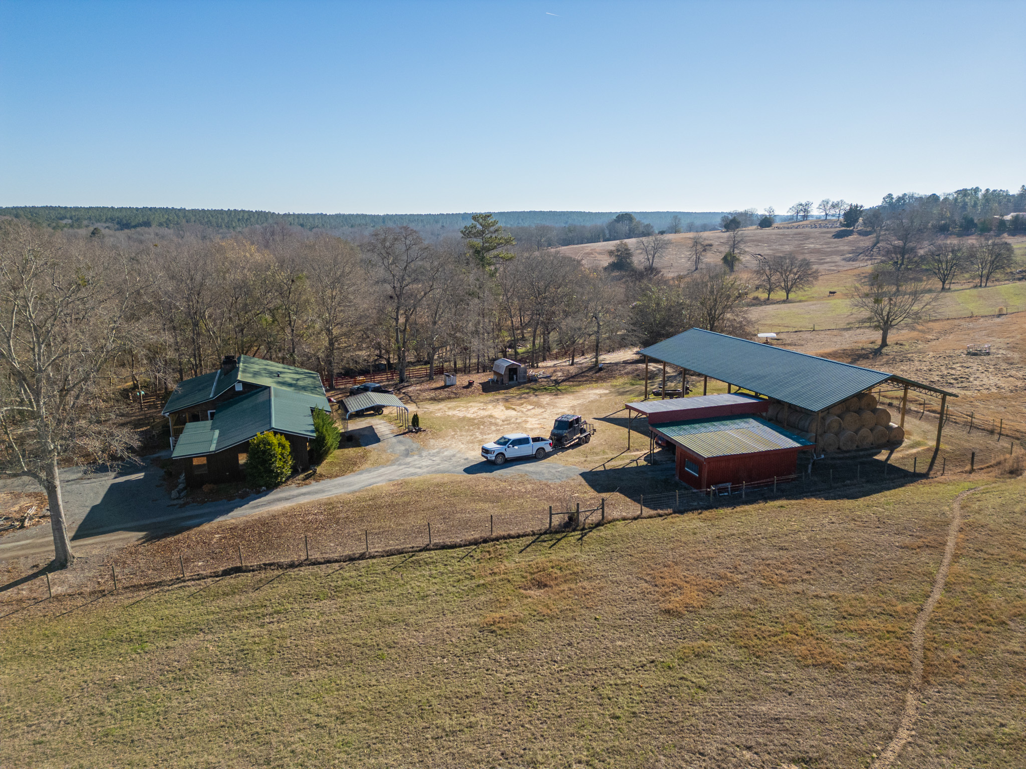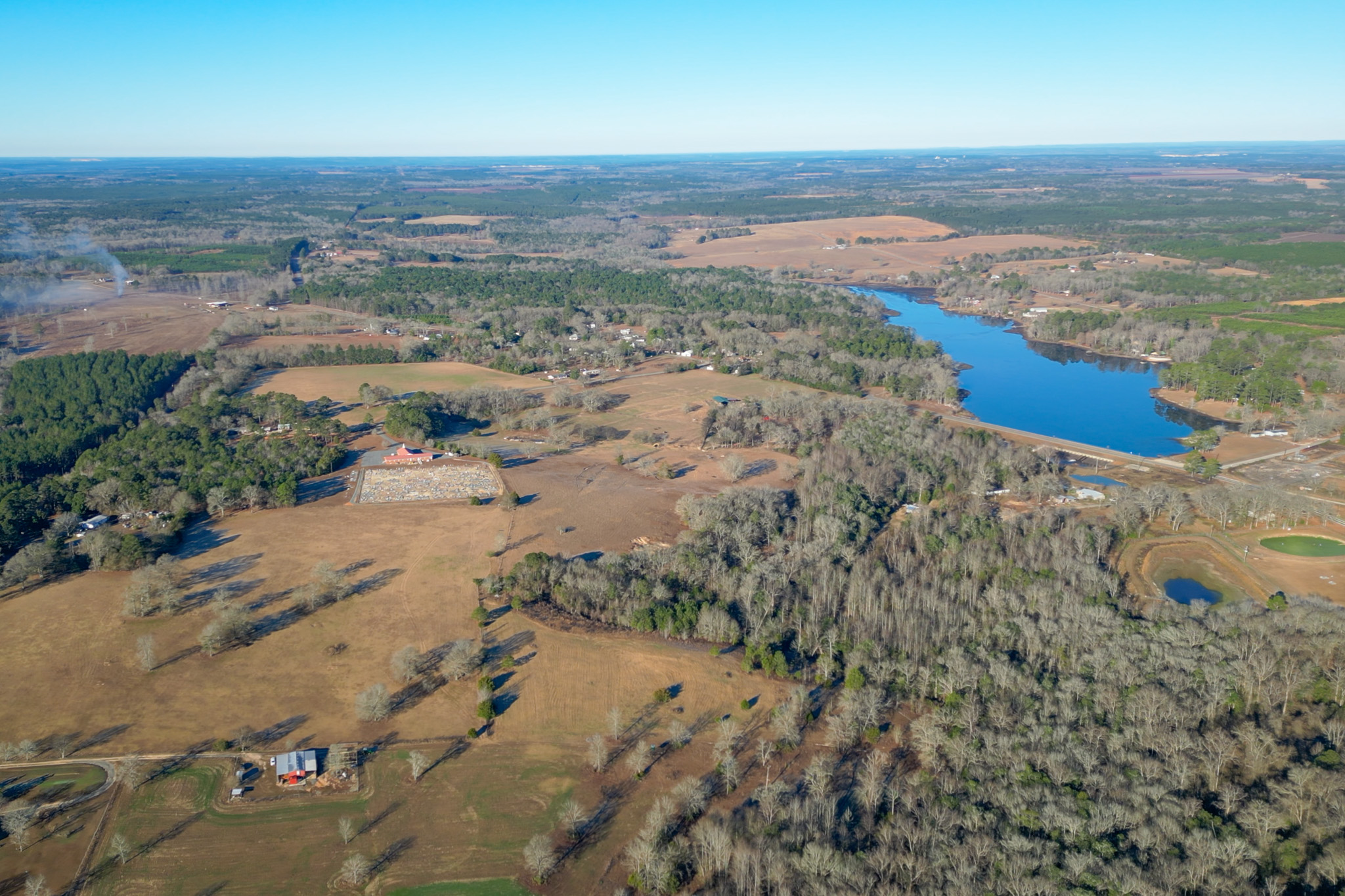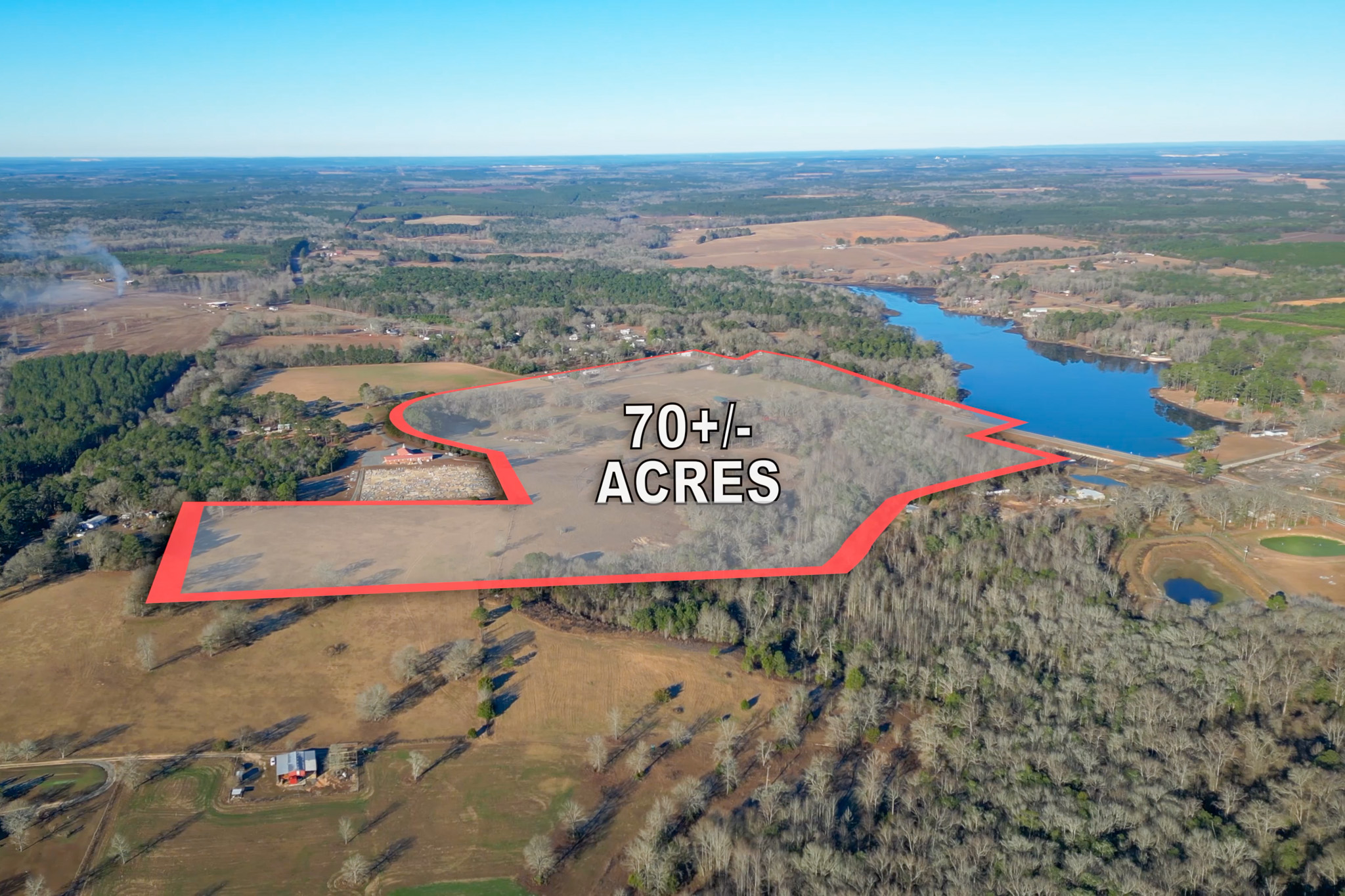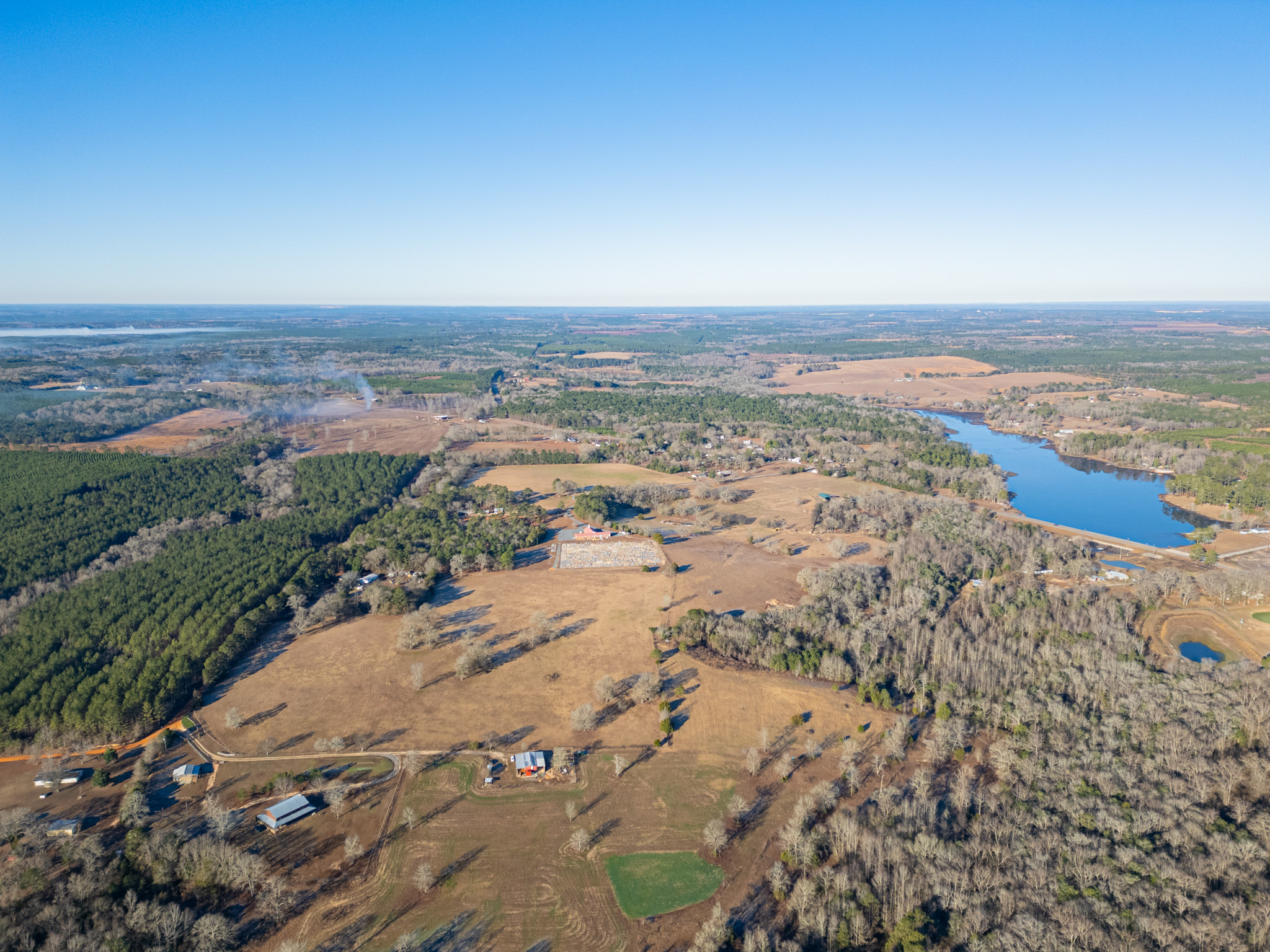 The farm is anchored by a stunning 90± acre lake, offering exceptional bass and panfishing and serving as the scenic centerpiece of the property. Additional water features include frontage on Horse Creek, further enhancing the property’s natural beauty and wildlife habitat.