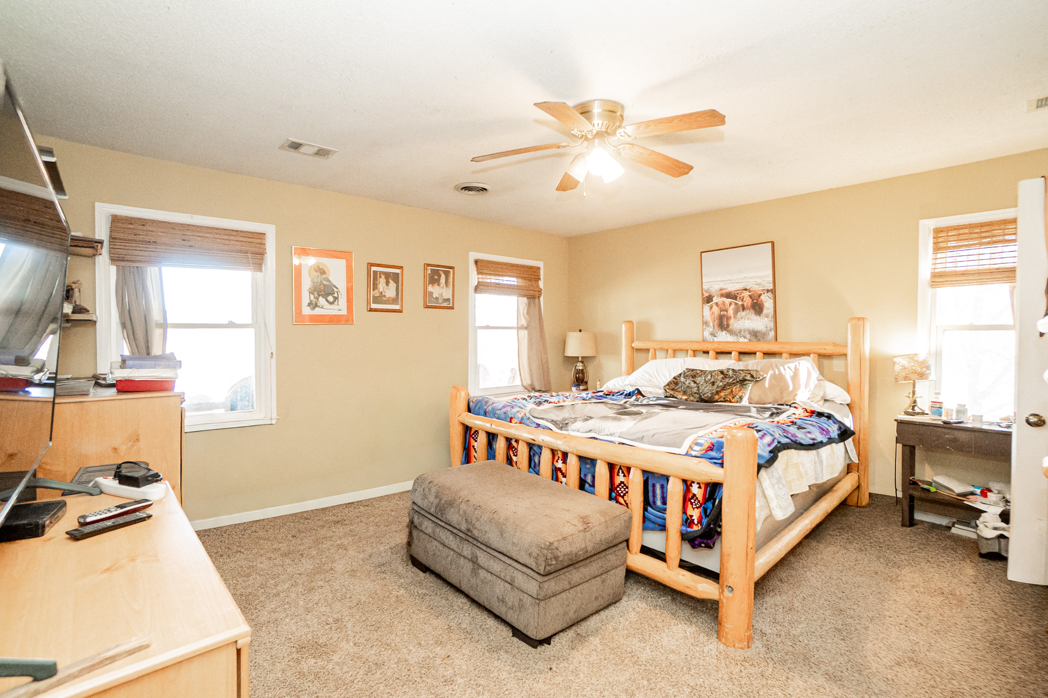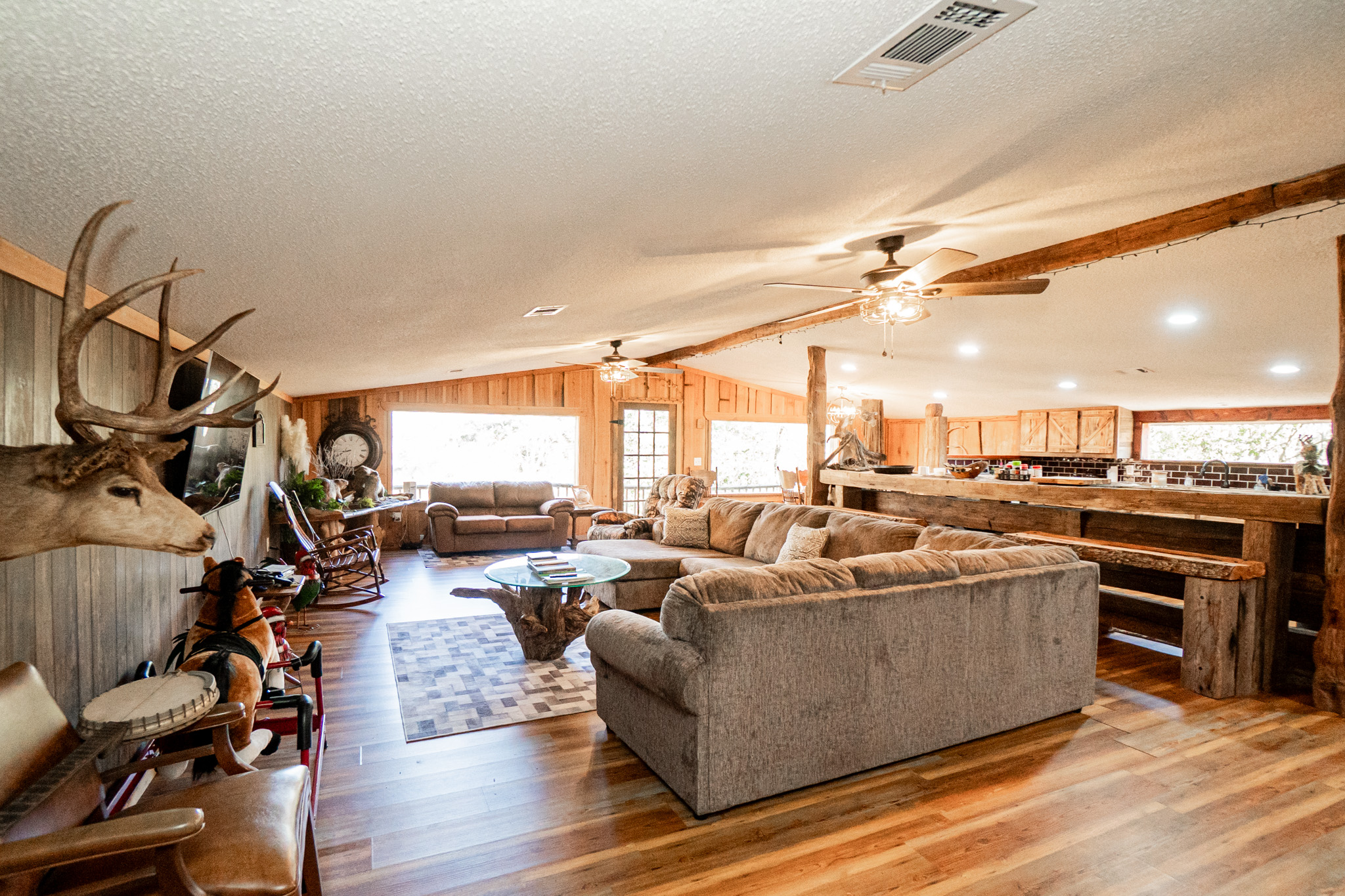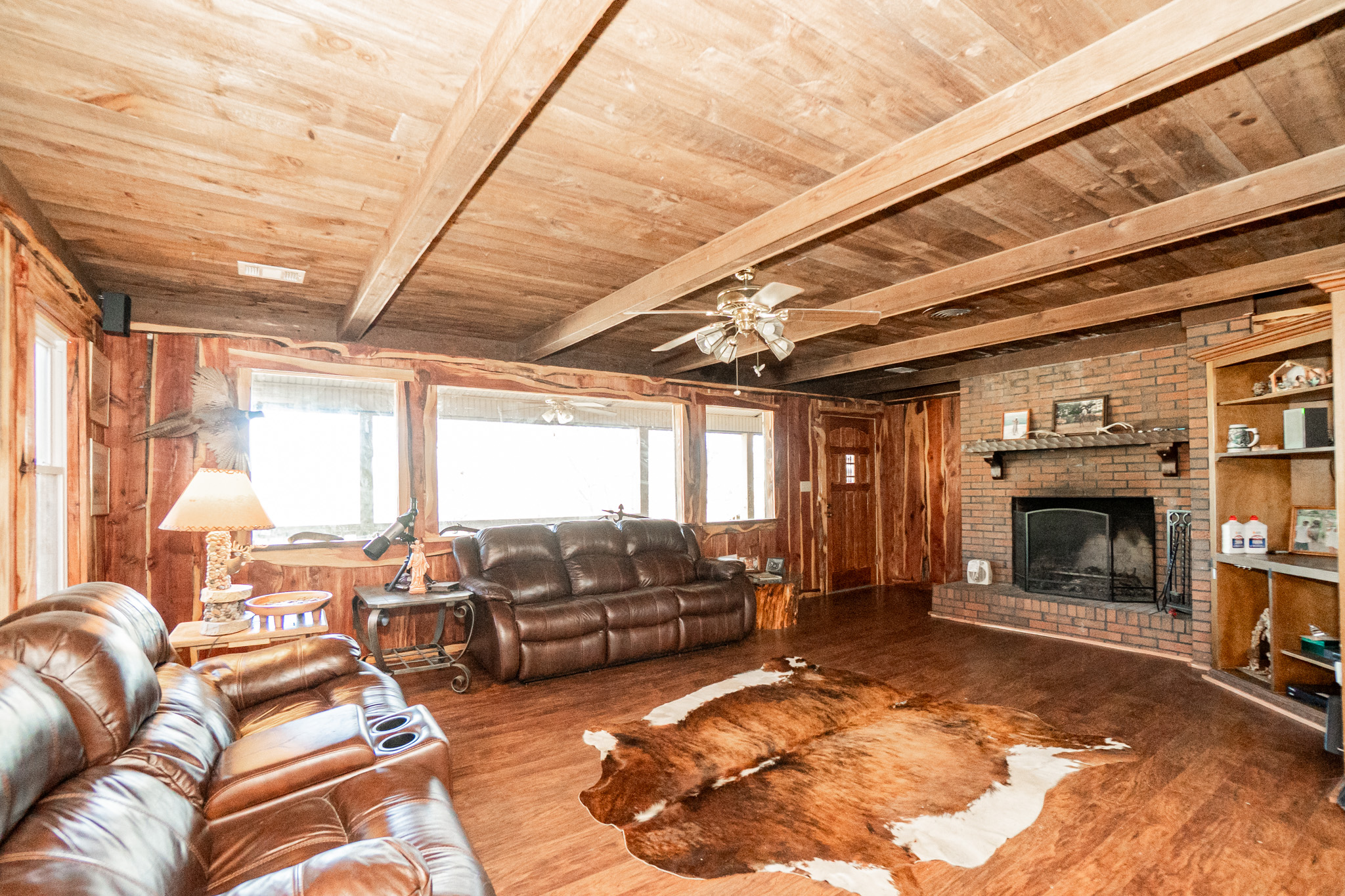 The main residence overlooks the lake and rolling pastures, offering peaceful views and a true connection to the land. The property also supports excellent deer hunting, making it equally attractive for recreational buyers.