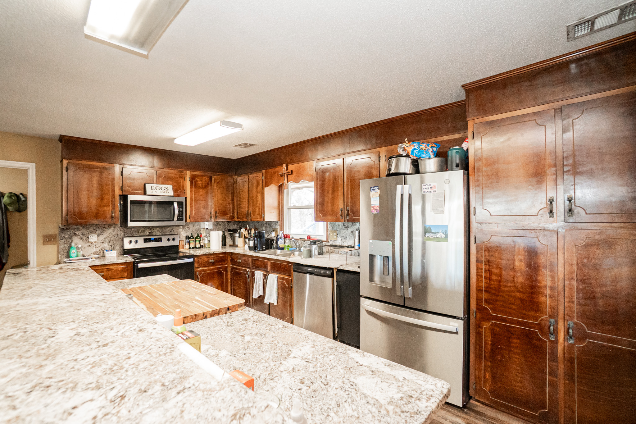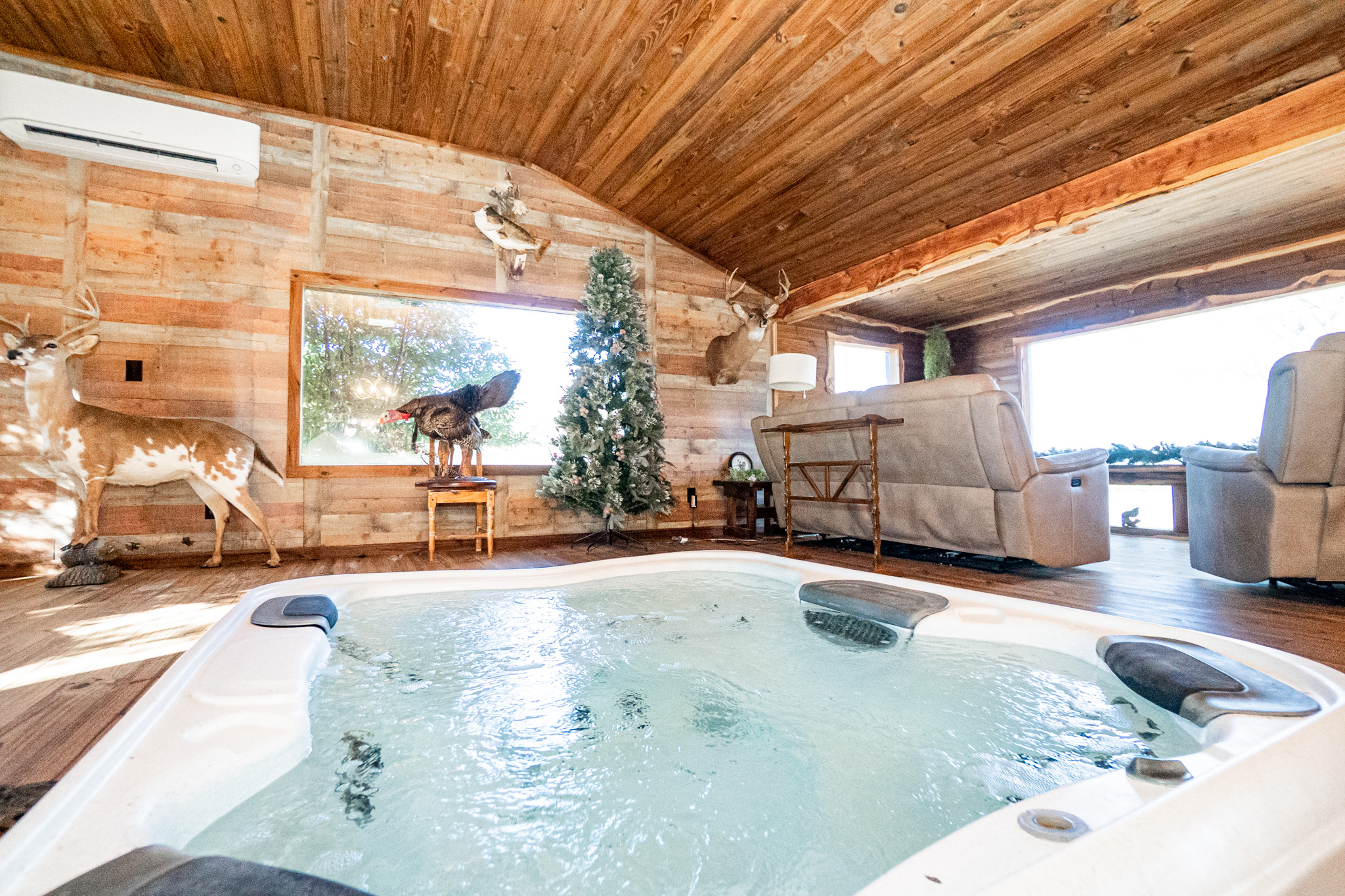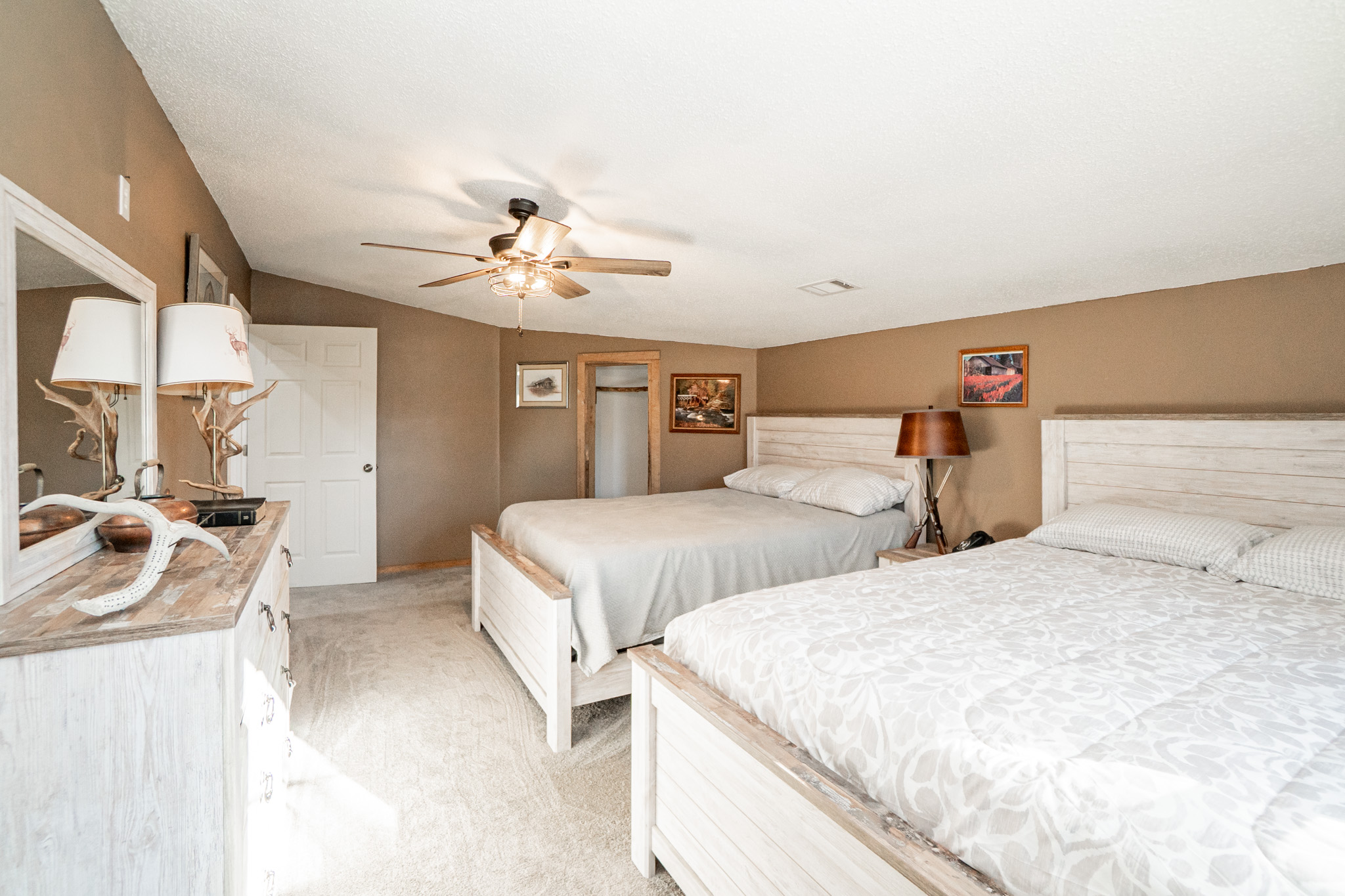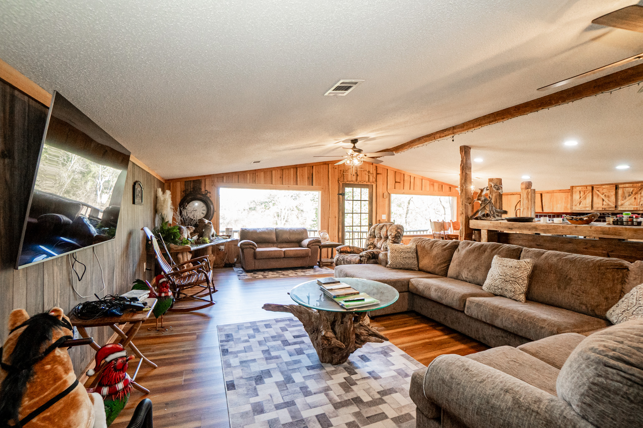 The main residence overlooks the lake and rolling pastures, offering peaceful views and a true connection to the land. The property also supports excellent deer hunting, making it equally attractive for recreational buyers.