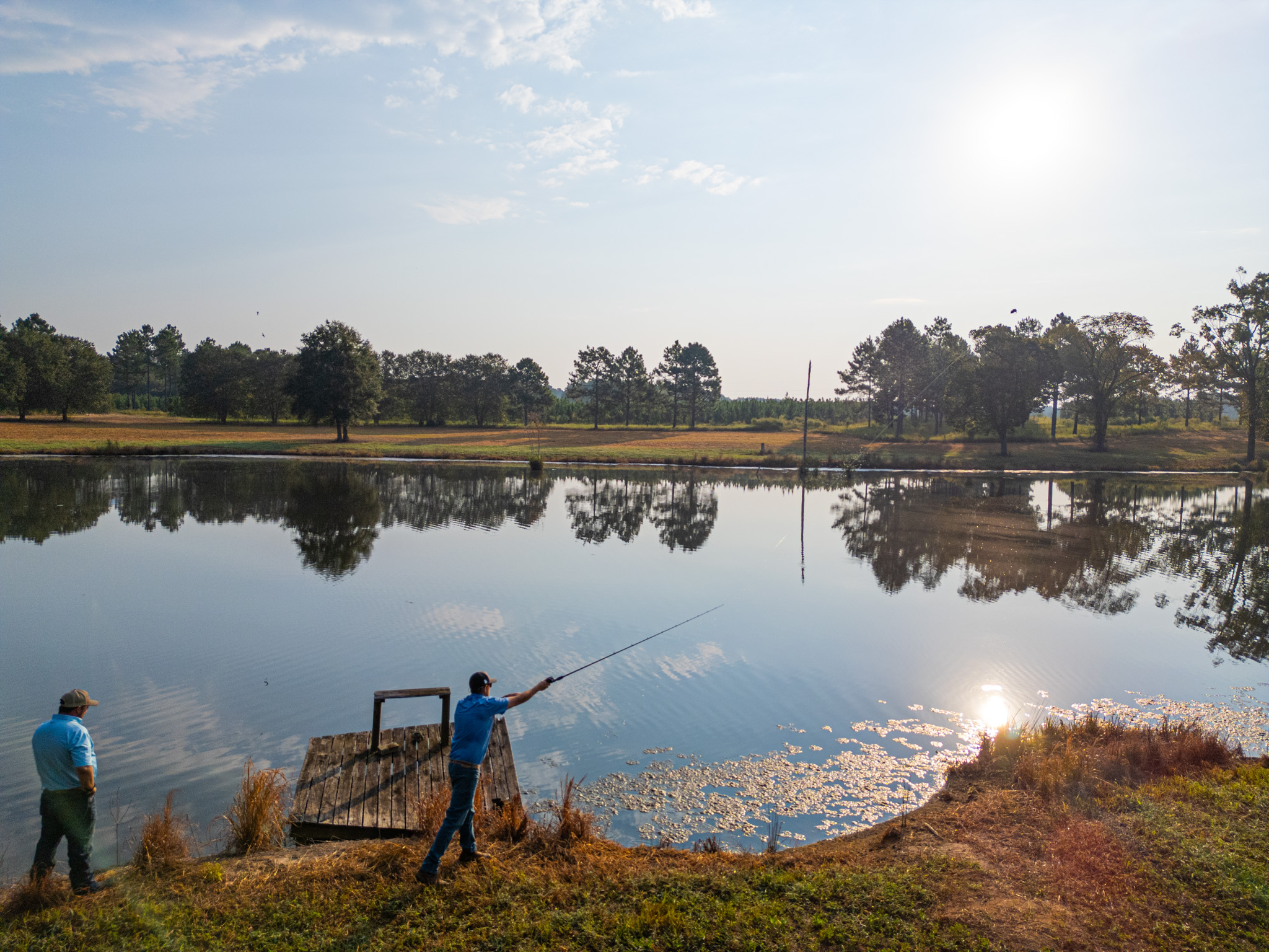 With over 25 acres of planted food plots and 50-60 planted fruit and nut trees through the property wildlife is always within eye view. There is a 20 acre dove field that has been planted and maintained, which results in an abundant amount of doves throughout the year. A 5 acre stocked fish pond, perfect size to place a small boat in and cast away your worries. A 6 acre plantable duck pond, that has been planted and maintained throughout years that has harvested multiple different species of water fowl. The duck pond also has a water control structures to maintain water levels while planting and throughout seasons.