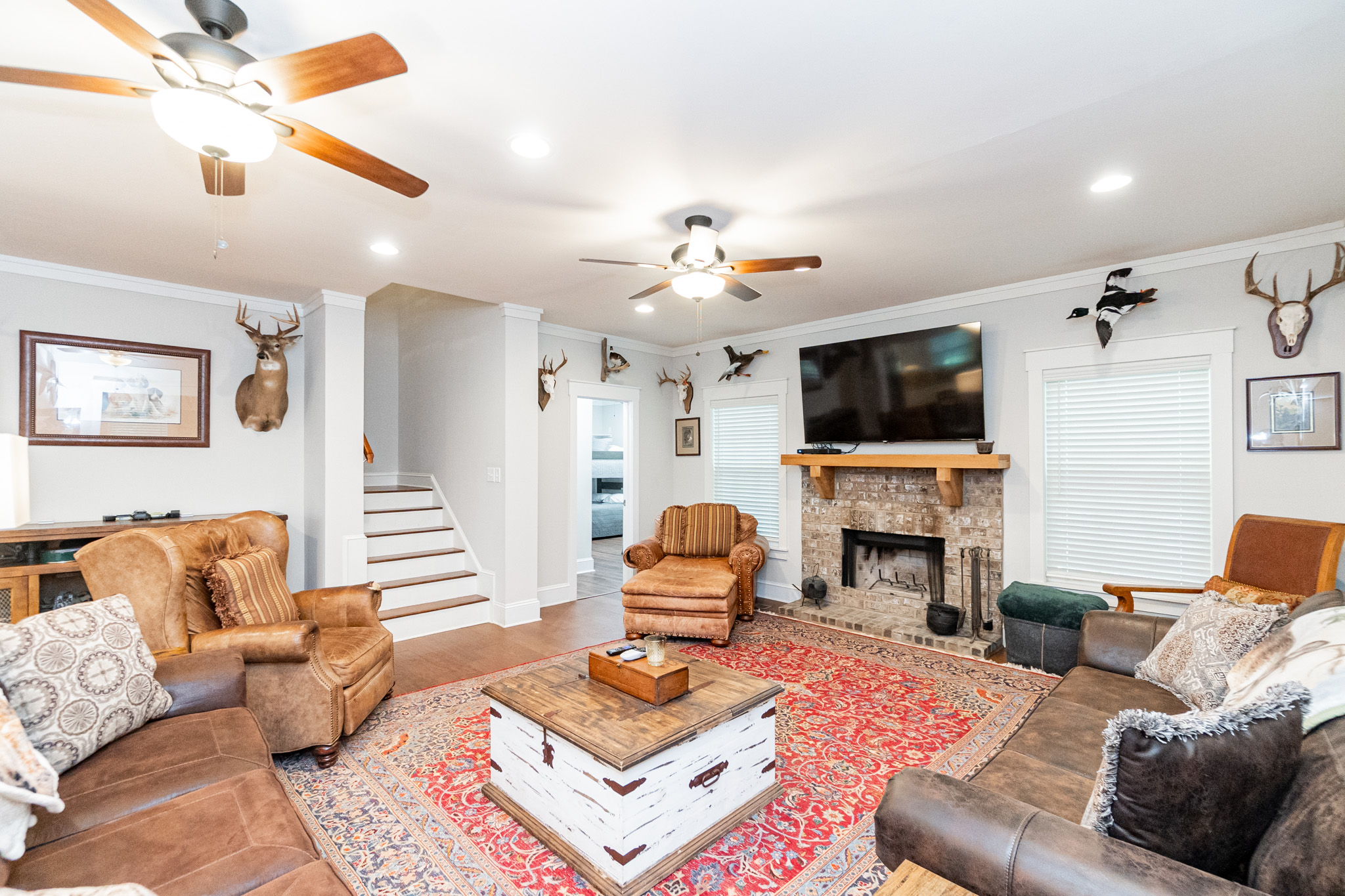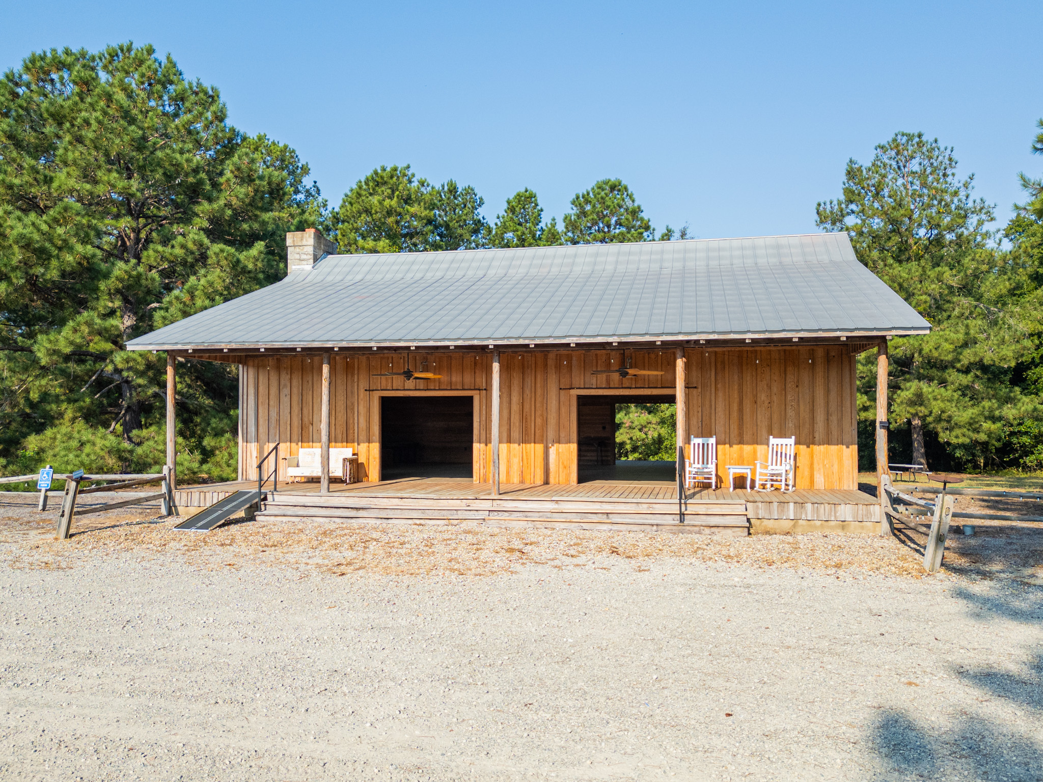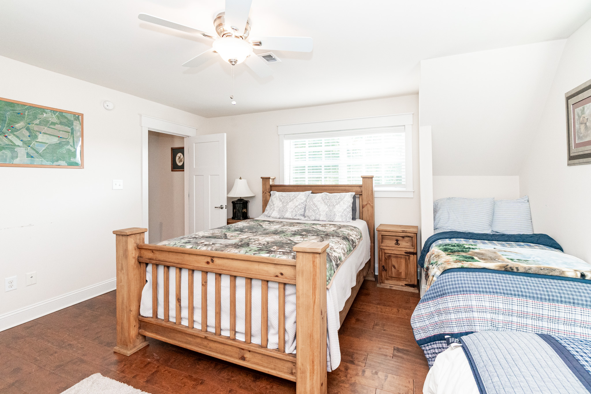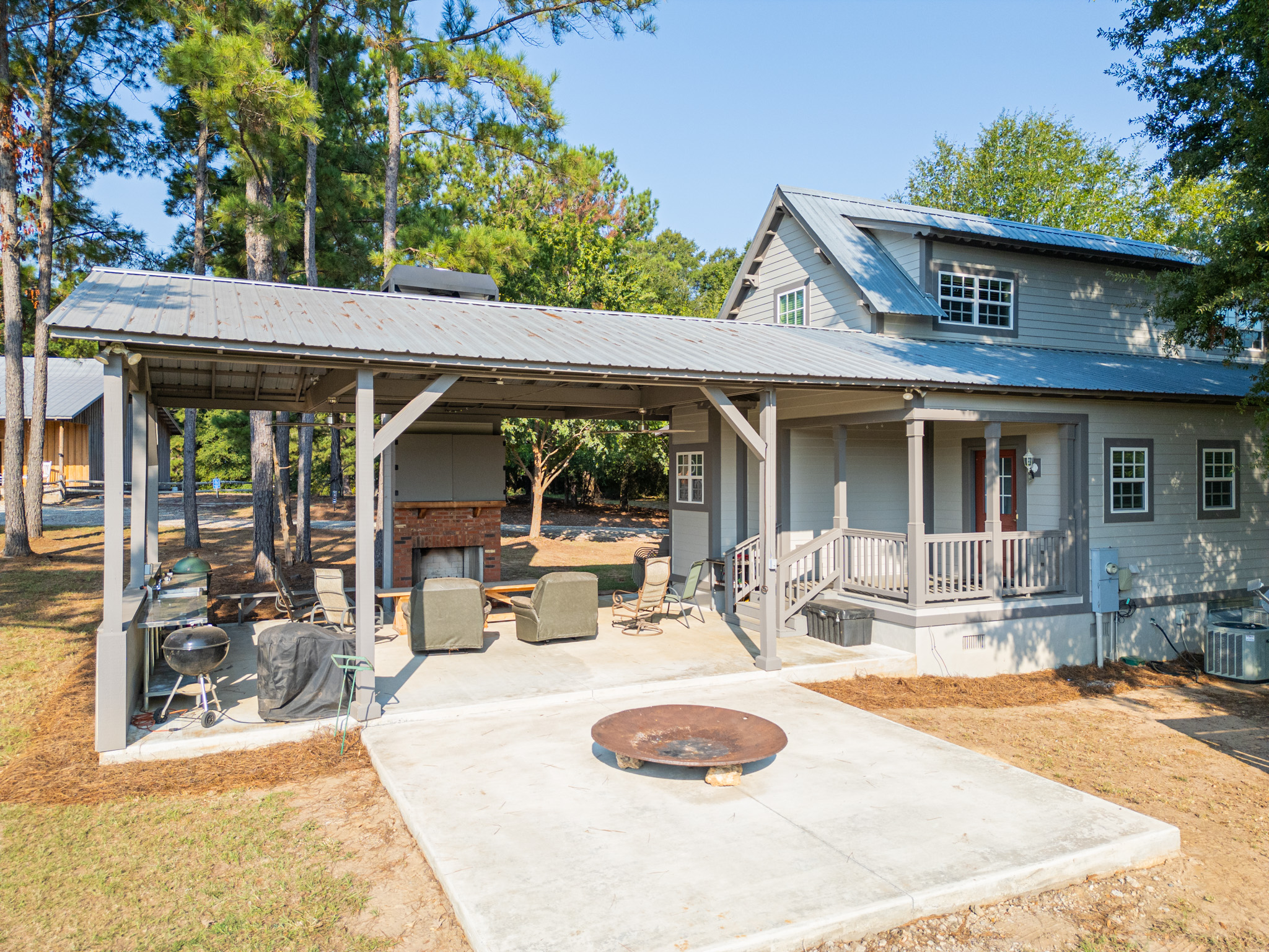 There is a completely furnished 4 bedroom, 3.5 bath lodge that is included. This lodge includes a master suite, two upstairs bedrooms with a full bath, and downstairs there is a bunk room with 2 sets of full sized bunk beds and a full bath. There is a large spacious living room with a fire place for cozy nights after a day on the farm, granite counter tops throughout the kitchen with an open floor plan. This lodge comes fully furnished and with all the cookware. There is a large covered patio great for cooking and hanging out, with a brick fireplace also outdoors. This is a modern up to date lodge that is the perfect add on to include in this one of a kind flint river farm.