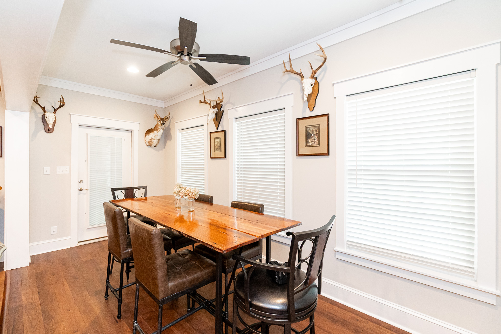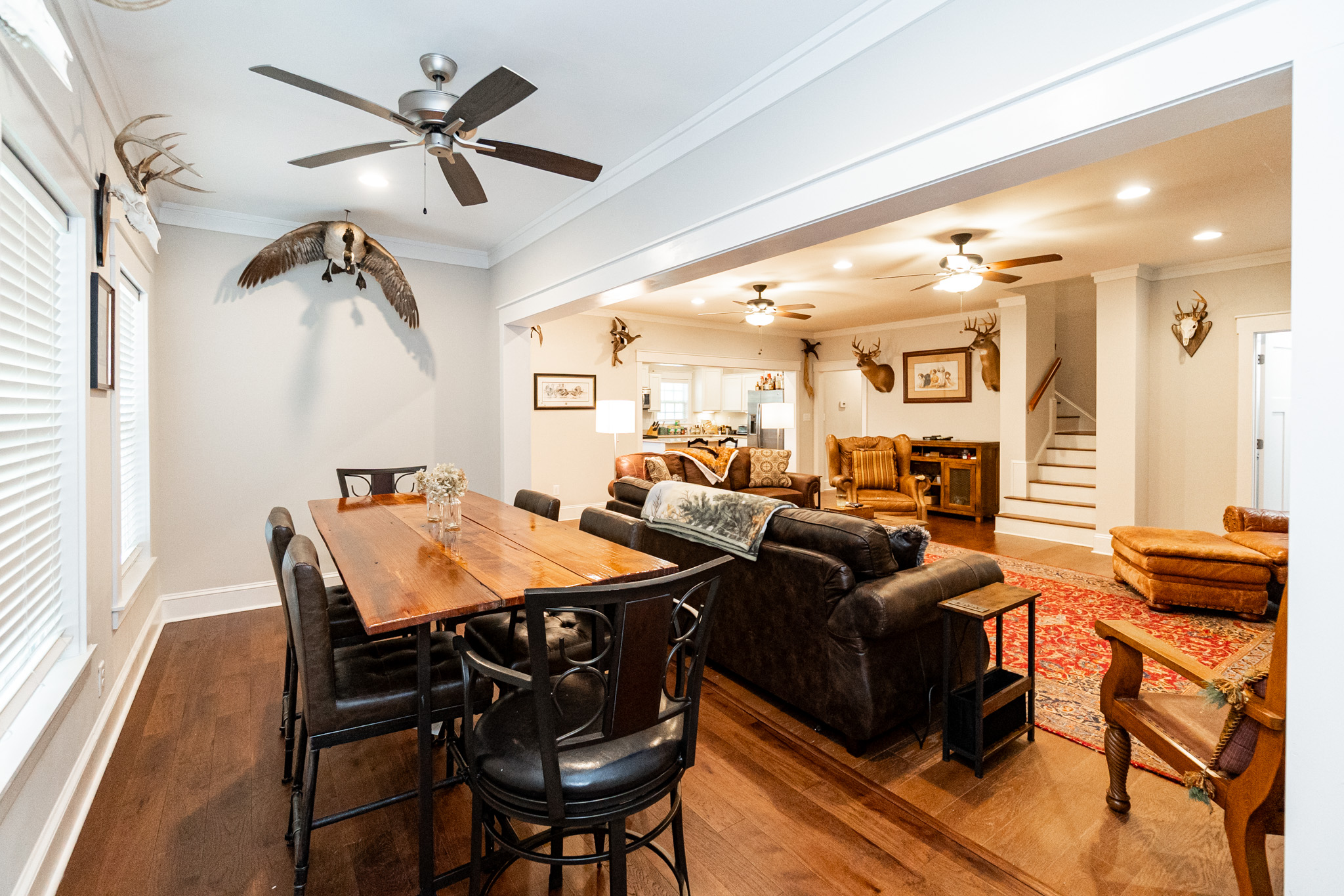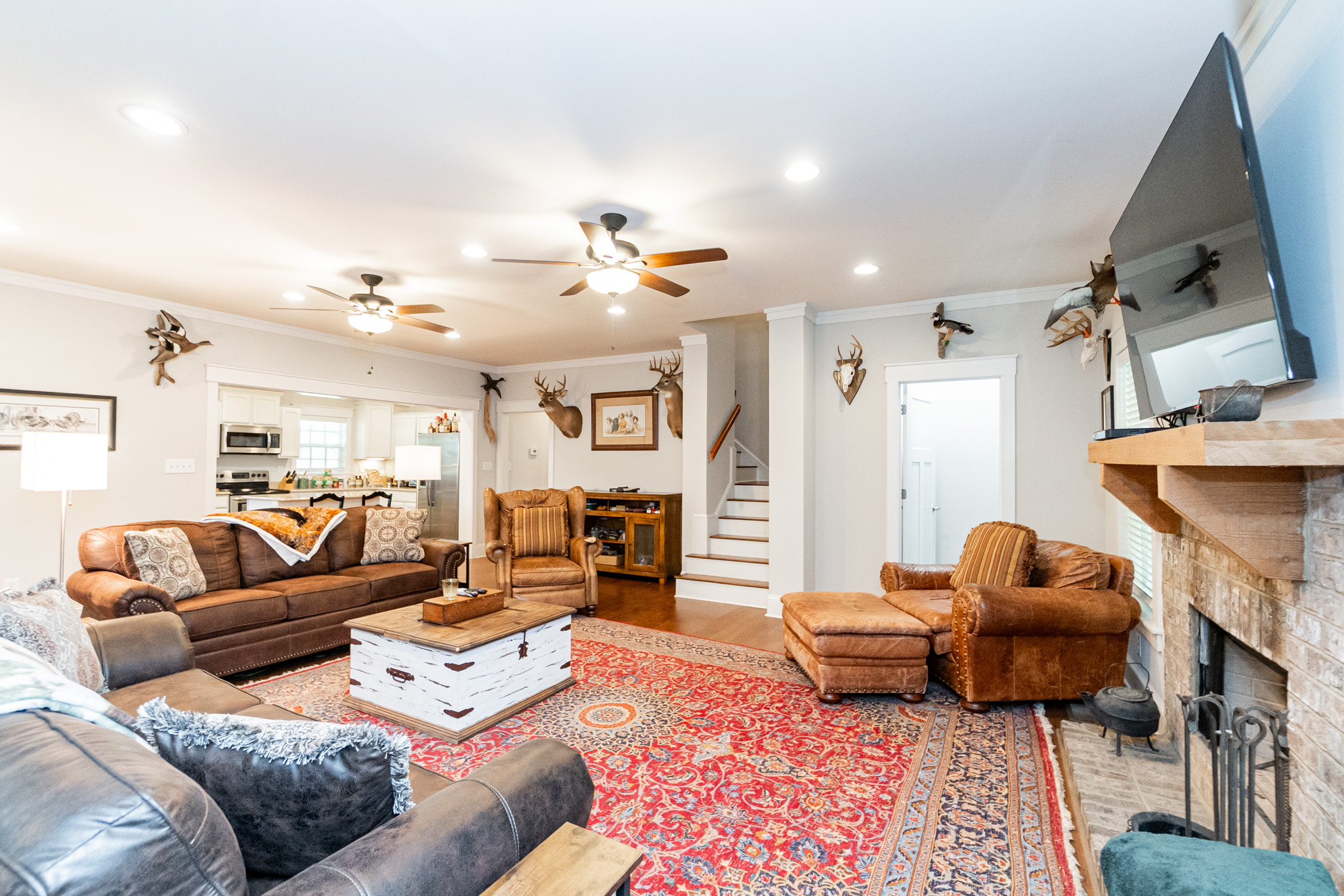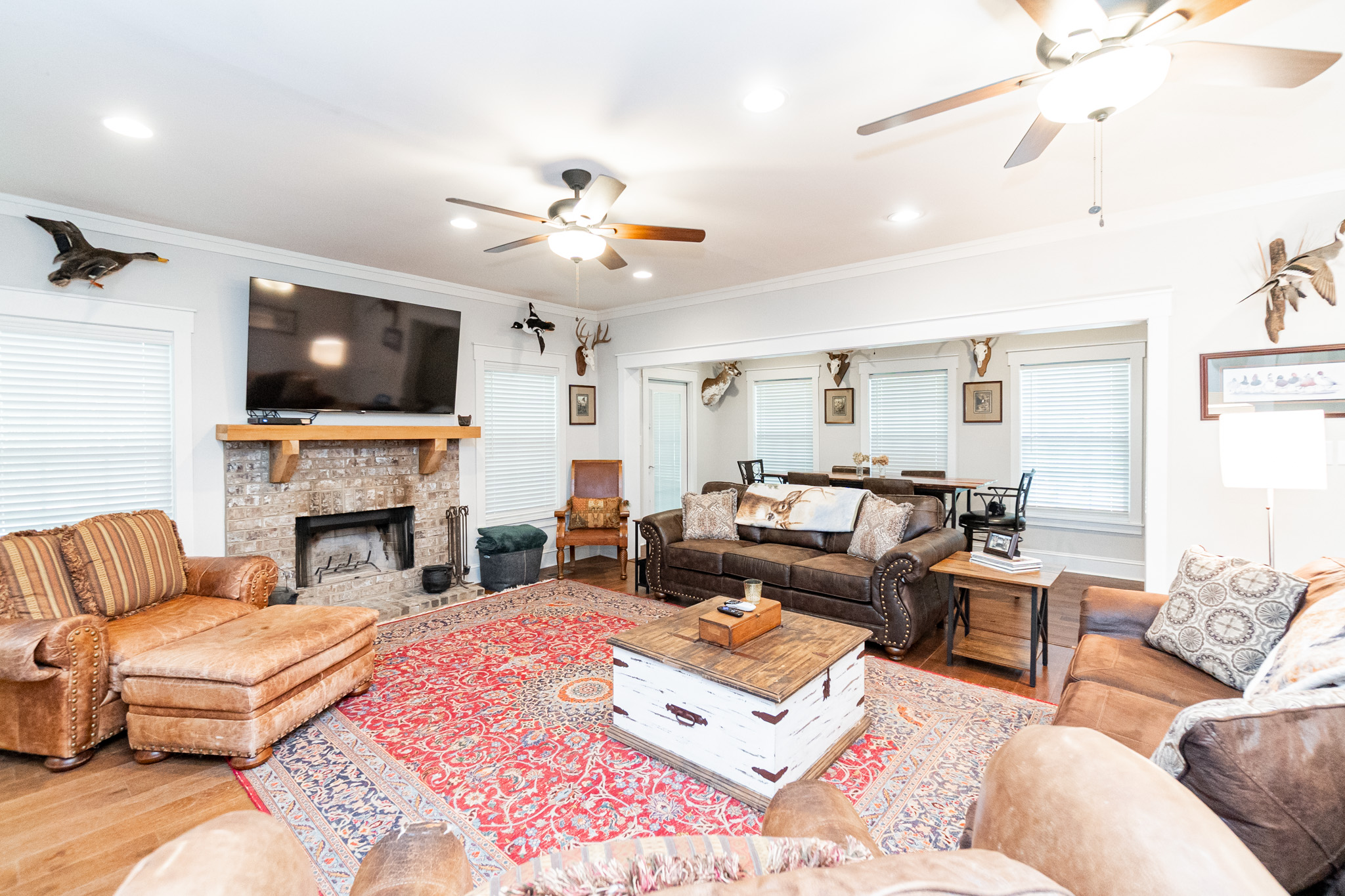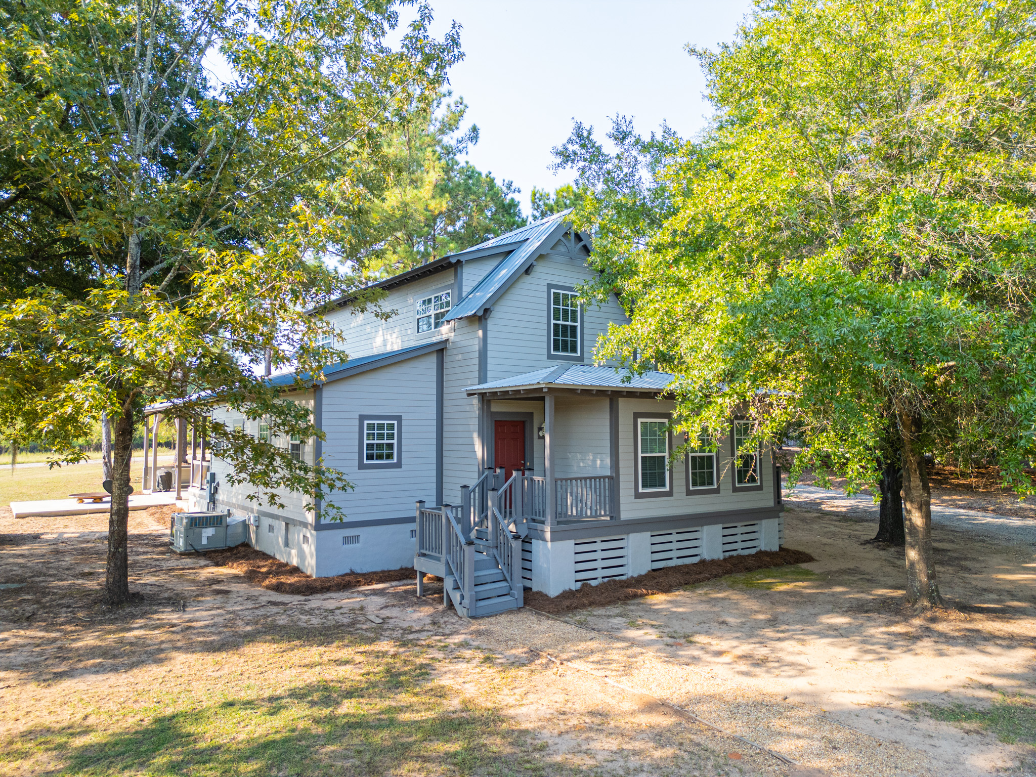 There is a completely furnished 4 bedroom, 3.5 bath lodge that is included. This lodge includes a master suite, two upstairs bedrooms with a full bath, and downstairs there is a bunk room with 2 sets of full sized bunk beds and a full bath. There is a large spacious living room with a fire place for cozy nights after a day on the farm, granite counter tops throughout the kitchen with an open floor plan. This lodge comes fully furnished and with all the cookware. There is a large covered patio great for cooking and hanging out, with a brick fireplace also outdoors. This is a modern up to date lodge that is the perfect add on to include in this one of a kind flint river farm.