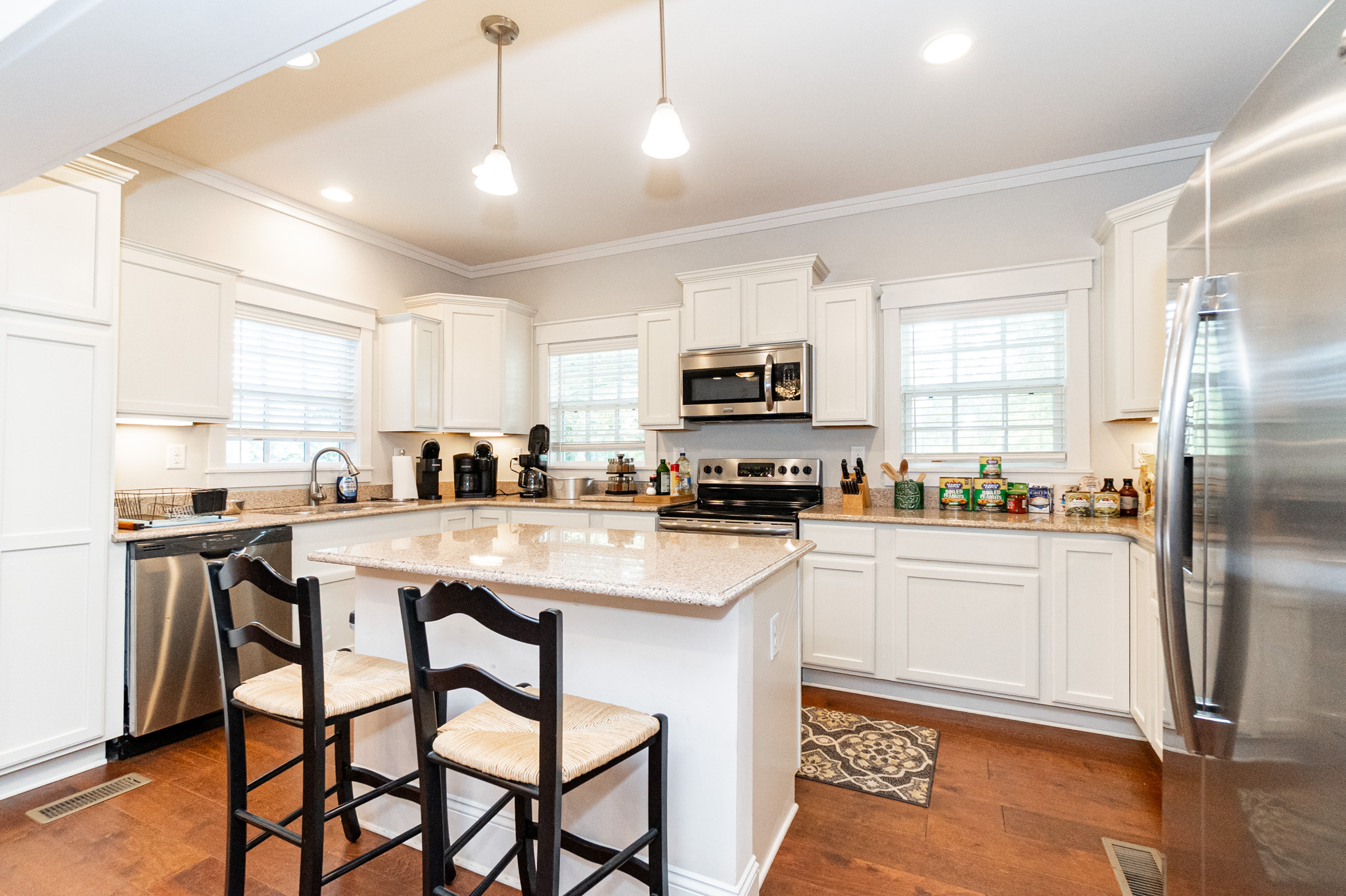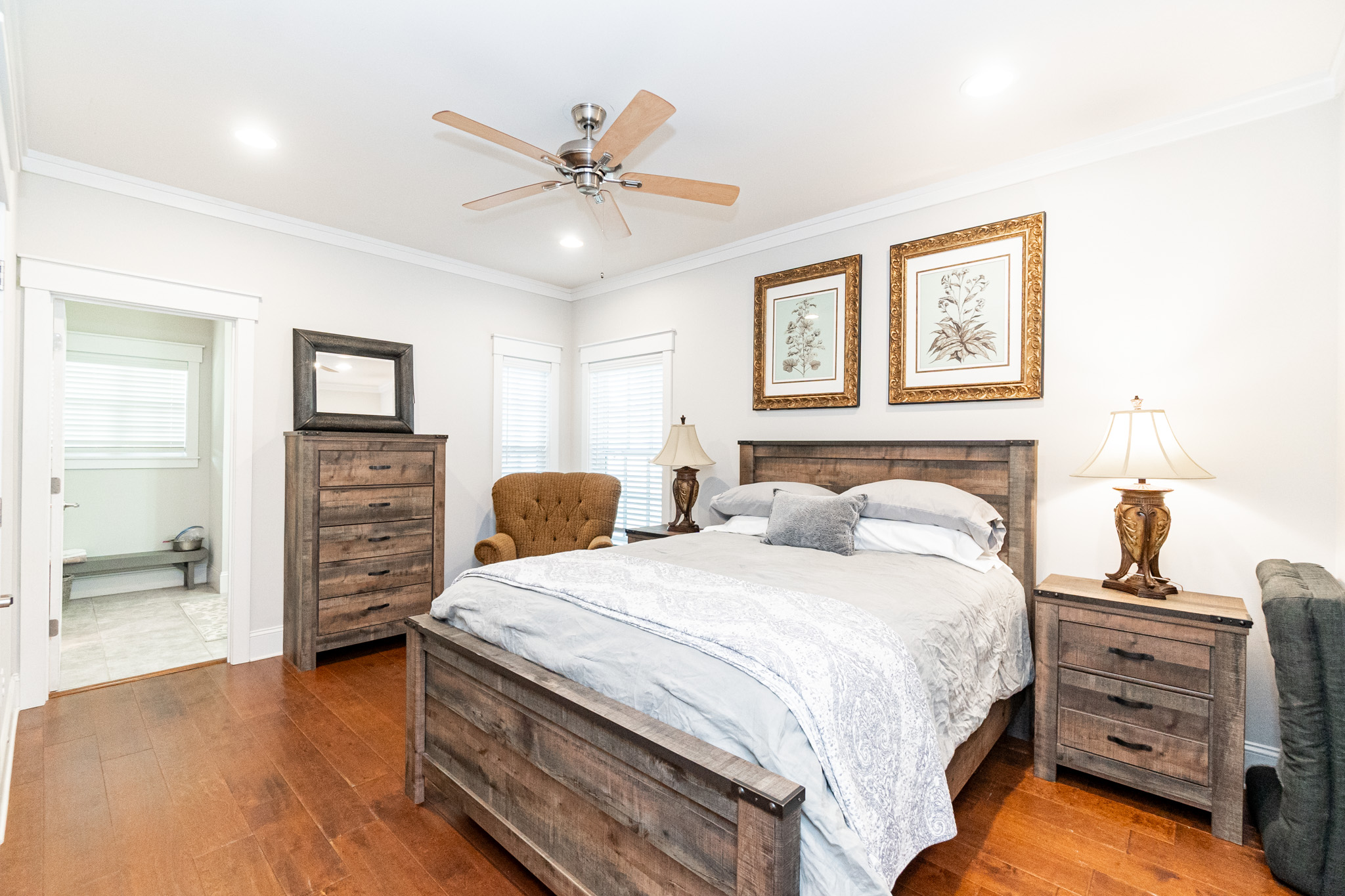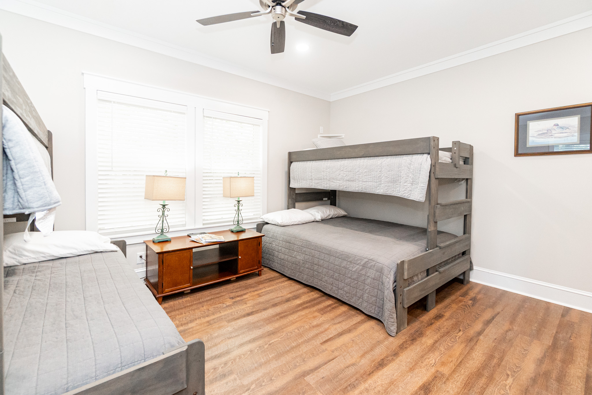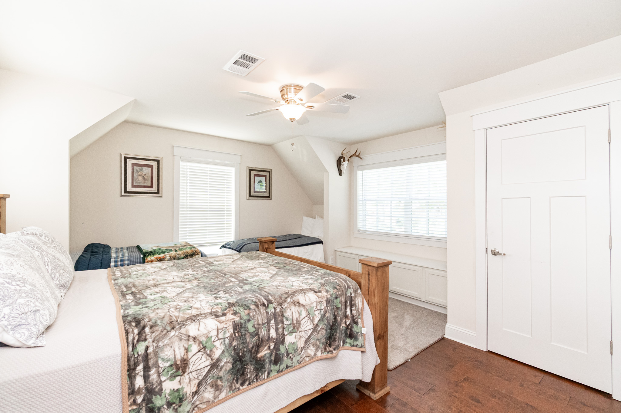 There is a completely furnished 4 bedroom, 3.5 bath lodge that is included. This lodge includes a master suite, two upstairs bedrooms with a full bath, and downstairs there is a bunk room with 2 sets of full sized bunk beds and a full bath. There is a large spacious living room with a fire place for cozy nights after a day on the farm, granite counter tops throughout the kitchen with an open floor plan. This lodge comes fully furnished and with all the cookware. There is a large covered patio great for cooking and hanging out, with a brick fireplace also outdoors. This is a modern up to date lodge that is the perfect add on to include in this one of a kind flint river farm.